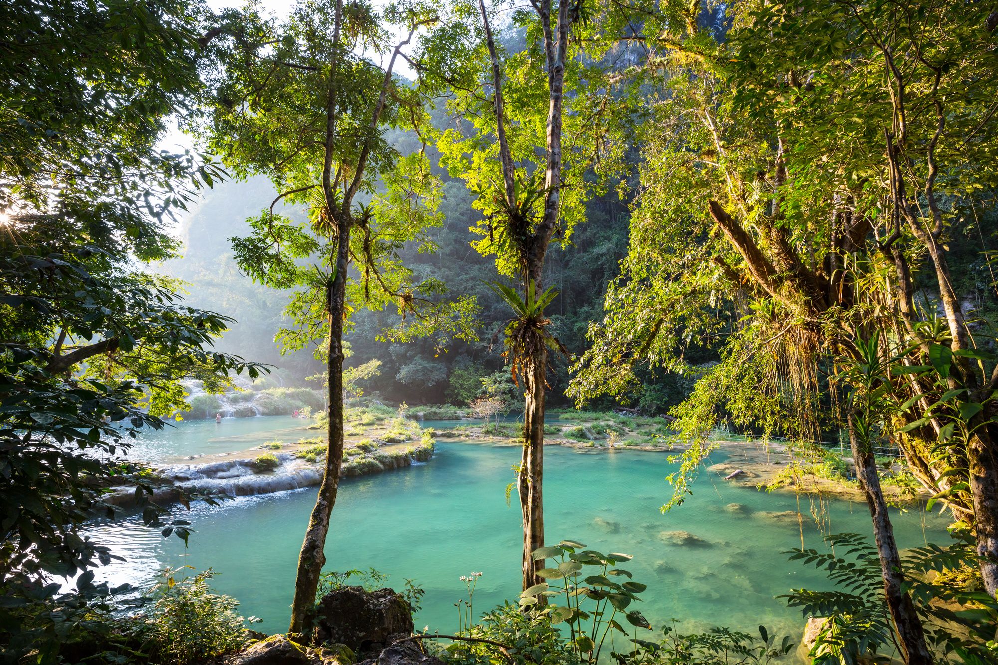 Seguimos recorriendo los lugares más bellos y salvajes de Guatemala. Hoy llegaremos al parque nacional de Semuc Champey. Para llegar hasta aquí realizaremos un trayecto de aproximadamente 1 hora en 4x4 metidos en montaña y pura selva, hasta llegar a este lugar mágico. Haremos una breve caminata hasta llegar a un mirador que nos ofrecerá la mejor estampa de las pozas de aguas cristalinas y turquesas. Luego descenderemos de nuevo para ver como el río Cahabón se esconde por debajo de una montaña. De hecho, Semuc Champey, en lengua local significa “El río que se esconde bajo la tierra”. Tendremos tiempo para relajarnos en este lugar especial y disfrutar nadando rodeados de naturaleza.